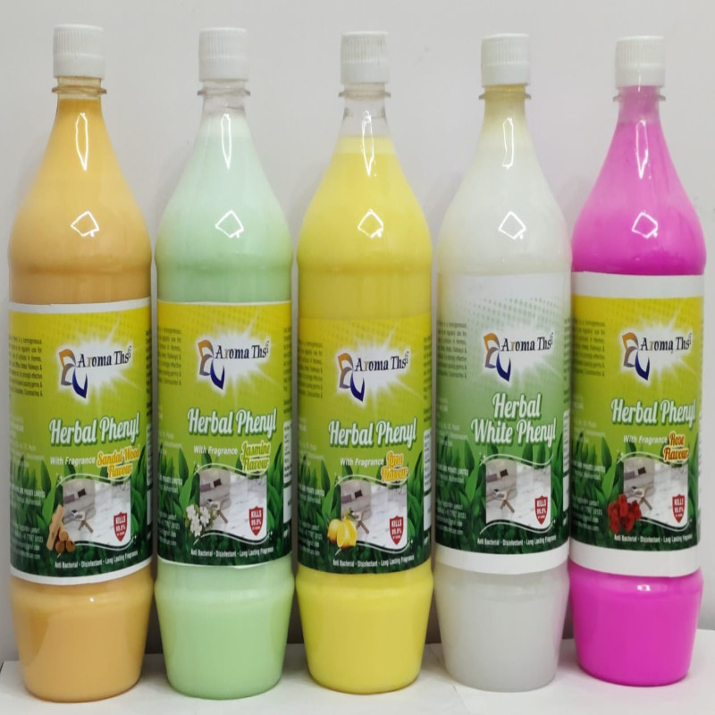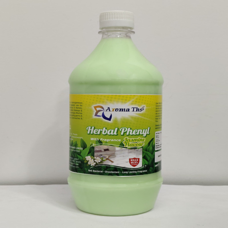 Aroma Ths Herbal phenyl is a disinfectant cleaner made with natural ingredients, offering a pleasant, aromatic fragrance and effective cleaning for various surfaces.