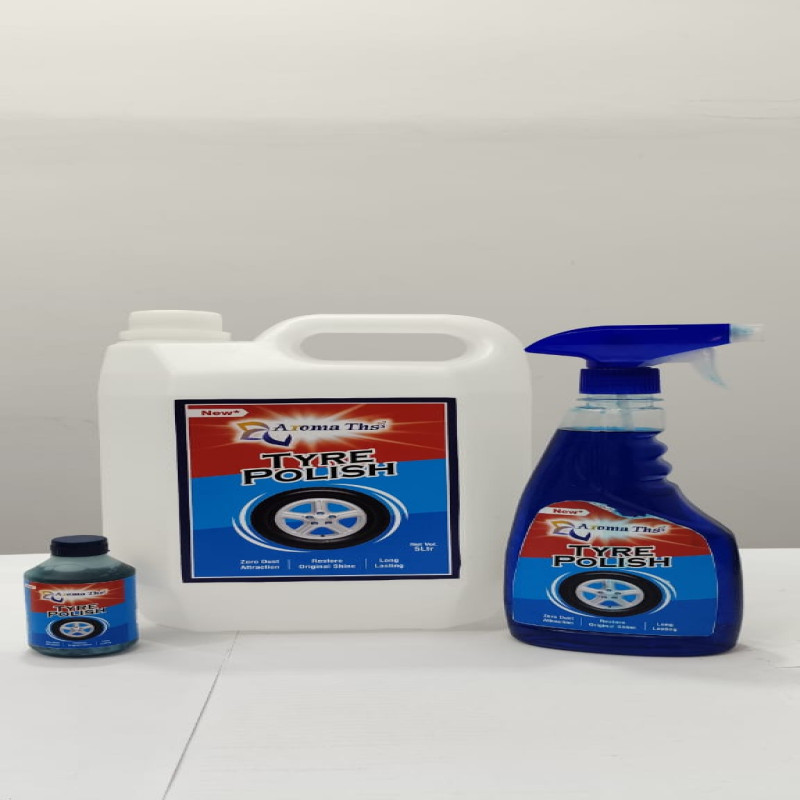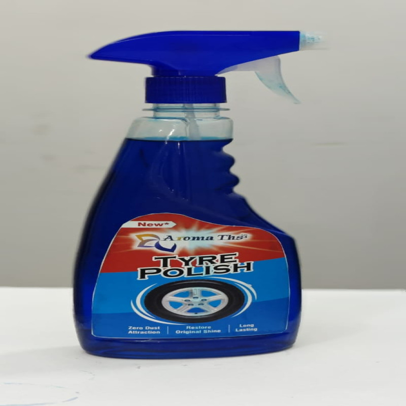 2. Directly spray Aroma Ths Tyre Polish on tyre & Wipe the surface with foam applicator and get shine.